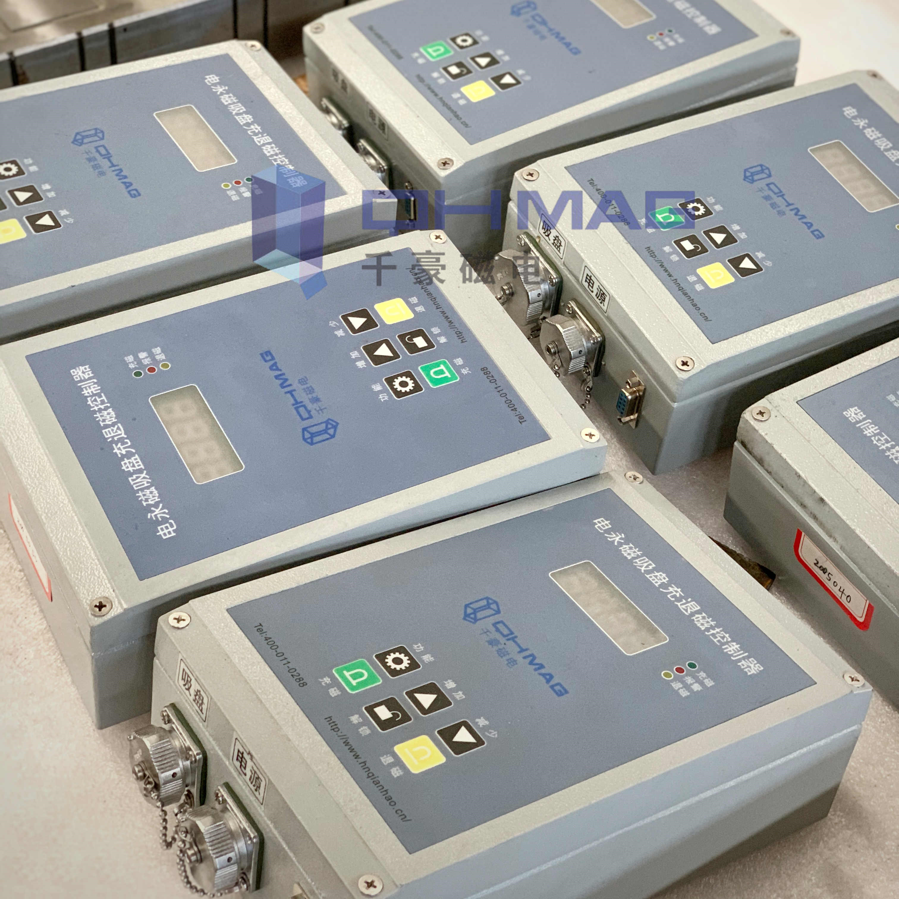電永磁吸盤控制器又名電控永磁吸盤控制器,又稱電永磁吸盤充退磁控制器,配套電永磁吸盤使用。湖南千豪磁電電永磁吸盤控制器相比市場上眾多電永磁吸盤控制器來說,千豪電永磁吸盤控制器具備過流保護(hù)功能,當(dāng)磁盤發(fā)生異常導(dǎo)致電流過大,控制器自動(dòng)切斷輸出,并由該通道指示燈紅綠交替閃爍報(bào)警,此時(shí)需要斷電檢查外部電路,排除故障后再重新啟動(dòng)控制器。提高了工作的安全性,間接提高了電永磁吸盤的使用壽命!