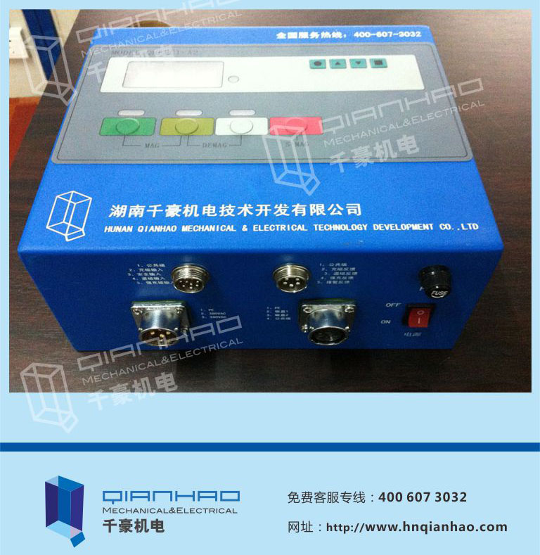具有安全保護(hù)功能:可通過(guò)解鎖輸入觸電信號(hào)和充磁狀態(tài)輸出觸點(diǎn)實(shí)現(xiàn)聯(lián)動(dòng),設(shè)有可調(diào)的充(退)磁電流(或短路)保護(hù)與欠流(或斷路)報(bào)警功能;所有設(shè)置參數(shù)與運(yùn)行狀態(tài)均可通過(guò)主機(jī)面板實(shí)行監(jiān)控,并具有電源頻率自動(dòng)跟蹤功能;所有1-8個(gè)通道(需要更多通道可根據(jù)用戶要求定制),每個(gè)通道可按要求設(shè)置為開(kāi)啟或關(guān)閉,通過(guò)退磁或消磁操作,能有效除工件表面剩磁。