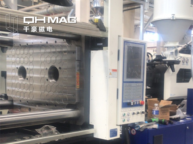 雙色注塑機電永磁 (以下簡稱:磁力模板)是專用于雙色射出成型注塑機,是使用電脈沖開、關磁力的新型磁力換模夾緊系統(tǒng),利用不同永磁材料的特性設計多磁源最佳磁路,通過電控系統(tǒng)對內部磁力線的分布進行控制與磁場轉換,使疊加磁場在系統(tǒng)內部達到平衡,然后利用磁力吸持模具。簡單來說就是通過磁力來吸附住模具,從而進行注塑成型。磁力模板的作用就是提高更換不同模具的速度,以達到減少停機時間,提高工廠效益!實驗數(shù)據(jù)表明一般換模僅需3分鐘,特大模具也只需要10分鐘左右。