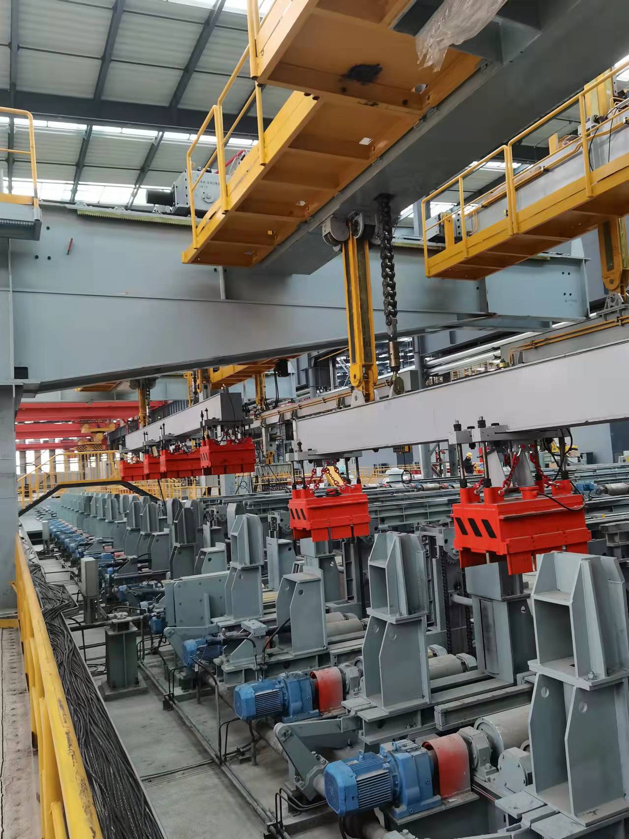 千豪技術(shù)團隊根據(jù)現(xiàn)場工況設(shè)計的吊型材,鋼軌自動化生產(chǎn)線用電永磁鐵吊具,采用5臺電永磁鐵聯(lián)吊,最長可吊運12米長型材