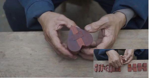 這個心型戒指盒,把戒指藏在最里面,六道魯班鎖就成了層層機關(guān)的保險,沒點技術(shù),還真的打不開。