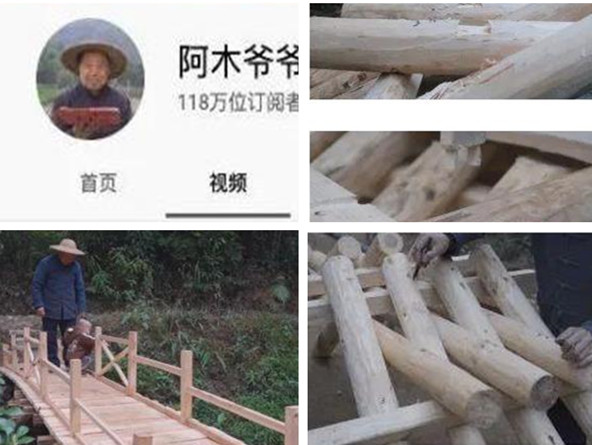 徒手做拱橋的視頻,不用釘不用角鐵,全靠一門中國自古就有的榫卯結(jié)構(gòu)(在兩個(gè)構(gòu)件上采用凹凸部位相結(jié)合的一種連接方式。)技術(shù)拼接而成。在油管上破了4000萬的播放量。